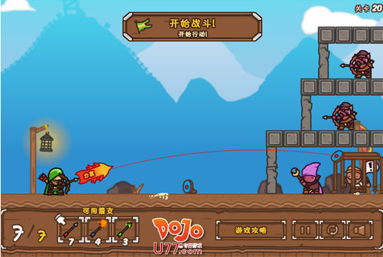 大箭师鲍比是一款休闲益智类的小游戏。该游戏玩法和《愤怒的小鸟》相类似,非常休闲的小游戏。在游戏中玩家可以用鼠标来控制弓箭发射的角度与力度,有兴趣的玩家可以玩玩看哦。