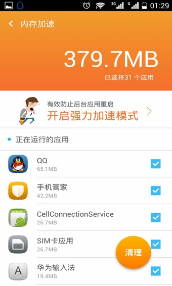 2.强力加速,对付顽固重启应用持久有效UC优化大师能有效防止后台应用重启,开启强力加速模式。通过特有的强制停止应用技术,让顽固重启的应用在停止之后效果持久,彻底释放你的内存。在非Root情况下,同样可以达到Root情况下的效果。