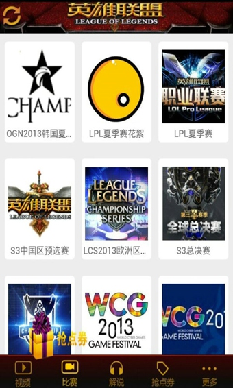 赛事直播全程参与,正在进行TGA大奖赛、OGN等热门赛事,6.14~8.16即将进行LPL夏季赛