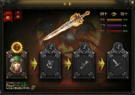 玩家达到一定的等级之后,可以自动接到自己职业的转职任务:界面上方会弹出转职按钮“ 下图 ”点击按钮,可以打开转职界面:通过相应的流程即可完成转职。