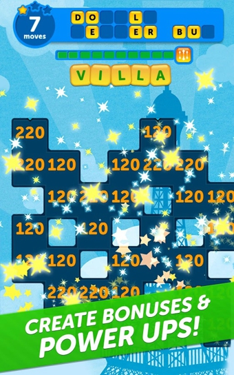 而且,若能打横、打竖、打斜直线拼写的单词,消除後便可获得一个有加成功能的字母。而在下一次拼写单词时,恰好用上这个有加成的字母,可引发连续消除的效果,得分自然会更高。