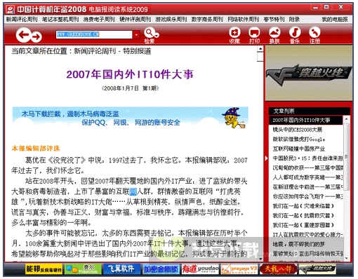 刚刚从电脑报2008合订本光盘出提取的阅读系统2009。只包含2008年的数据库,2005、2006、2007年的数据库稍后放上。 只在vista sp2 下测试通过。手里面只有vista的机器。。。