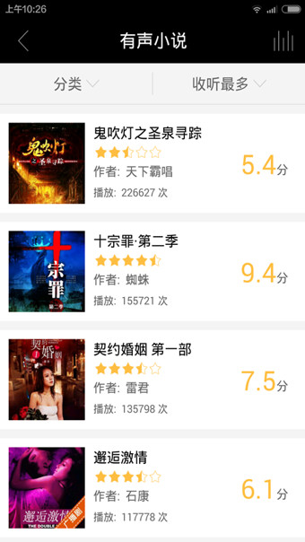 2、全新打分评价系统,更好地反映用户的最喜欢收听有声作品