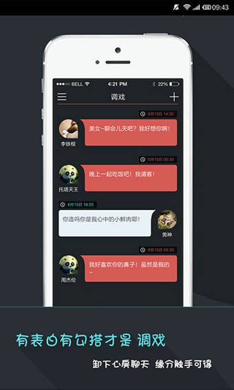 调戏是一款有趣的匿名社交应用,如果你想试探、想表白、想骂人、想调戏、想诱惑、想......,调戏会帮你说出一切有心没胆说的话!如何使用: