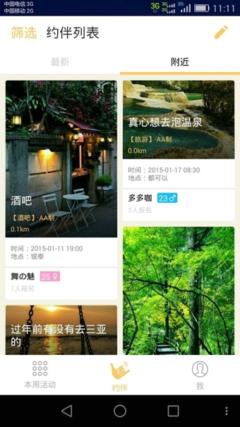 【快速约伴】:不想一个人呆着,想约三两同道中人,或出行、或K歌、或泡吧……,在周末宝只要动动手指,就能轻松发布一条约伴信息,精彩周末,如此简单。