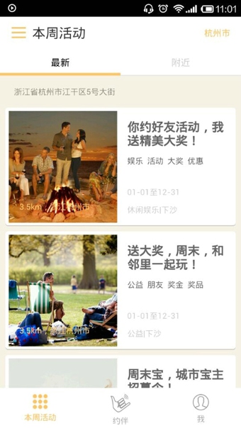 【内容丰富】:涵盖全国数百个城市的周末活动,包括户外旅游、教育培训、休闲娱乐、会展演出、公益慈善等活动内容。【自动定位】:无论你在哪,周末宝能自动定位,轻松查找周边的活动、附近的约伴信息,同时你也能知道自己所在的精确位置。
