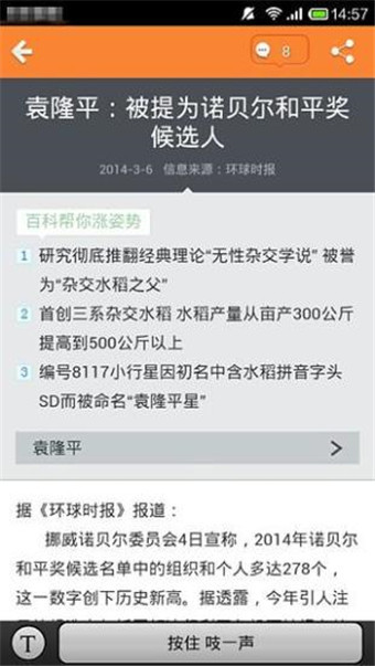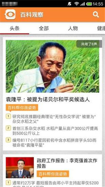 百科观察 v1.3.2 安卓版 百科观察下载是一款互动传播平台。该平台上会实时为您报道最新的社会新闻、娱乐头条和国家大事,并且用科学来解读新闻背后的故事,让您从中获取到精确有力的报道。