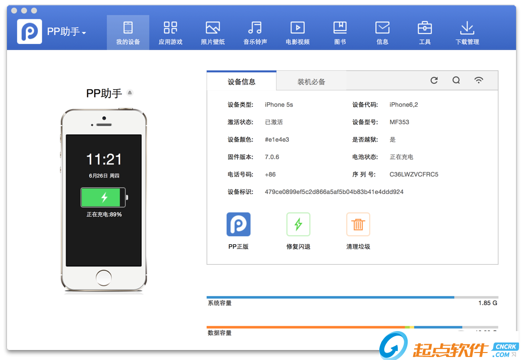 设备信息全显示连接设备可看到设备的激活状态、序列号、固件版本、保修日期等,应有尽有。