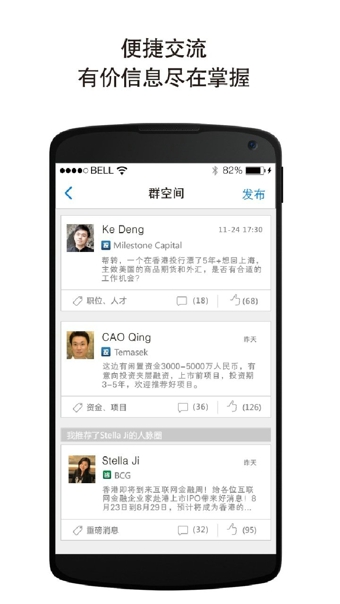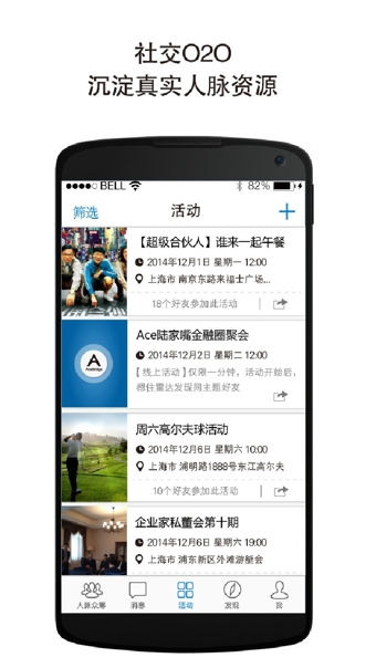 各种优质人脉众筹群和活动等待你加入,真实高大上,彰显使用者的逼格,与身边同事好友分享。