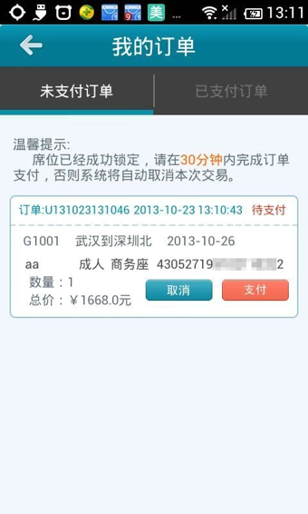新功能: 1.正晚点查询; 2.到站提醒与分享;修复: 1.提交订单异常; 2.查看订单异常;