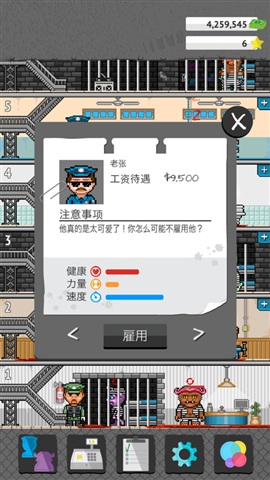 《小小监狱 Tiny Prison》一款模拟经营游戏在《小小监狱》中,玩家将扮演警察Warden管理自己的监狱,是不是很有个性呢?玩家需要升级监狱、新建监狱楼层,保持监狱的干净整洁、完成好政府下达的任务,并照顾好犯人不要让他们生病、越狱、想不开自杀等等,内容十分丰富。随着玩家等级的提升,还可以雇用警卫来分担事务,调查走私案件,自行释放犯人或判处死刑等等。让我们期待一下吧。