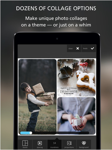 ? 通过编辑布局、背景和间距,创建和自定义照片拼贴。