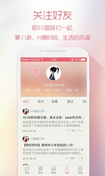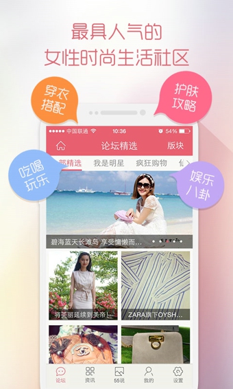 【爱55,爱生活】55BBS我爱购物网,中国第一女性消费门户!女性时尚购物,化妆美容社区。55BBS汇集全球顶级品牌新品资讯,第一时间直击世界时尚核心,强势达人资源,十年累计,一心为你!时尚消费,快乐分享。【软件特点】