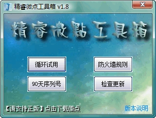 精睿"iamzyj"制作的微点主动防御软件工具箱,可循环试用,下载90天序列号,防火墙规则。