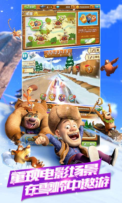 手游以顶尖绘制技术再现了大量电影中的经典元素,美翻天的丛林、雪山等场景纷纷神还原,在人物台词方面亦经过反复的对比、斟酌,逗比或者呆萌,所有角色都将鲜活精彩。玩家们可以雇佣自己喜欢的车手、选择各种狂拽酷炫屌炸天的跑车,享受不被罚单的飙车之旅。一路飞驰相伴,谁又能说天生死对头的光头强和二熊之间没有真爱呢?