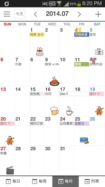 不仅能够利用各种可爱的贴纸进行装饰,还支持中文、英文,不仅如此还能确认公休日!