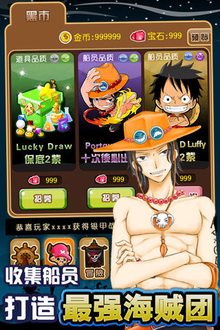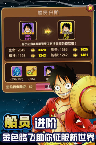 《海贼王挂机》是一款以超人气动漫《海贼王》为题材,用Q版风格配合新奇多样的玩法的经典放置类游戏,以高度还原《海贼王》的故事发展线路,超高水准的重现了原作中的海贼世界,以超简单的玩法让玩家解放。经典的剧情副本,耳熟能详的BOSS,惊艳全场的装备,海贼世界中丰富多彩的伙伴,将满足所有游戏玩家的需求,让他们随时随地都能体验到最畅快最轻松的英雄战斗。【游戏特点】