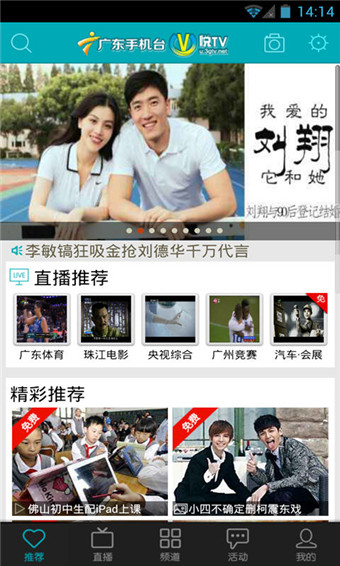 1)电视直播:在线电视直播频道包括各省卫视、广东省台和特色频道等,更多热门直播频道将陆续上线,总频道数超过50个。