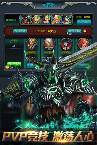 游戏提供精心设计的冒险关卡和副本,以及可实时竞技场的在线PVP竞技场,玩家通过不断积攒资源和经验,提升荣誉和实力。