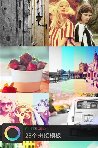 - 23个拼接模板将照片分成不同网格,每个网格使用单独滤镜效果
