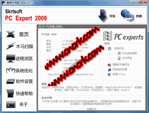 PC专家 V3.9 简体中文绿色免费版 pc专家是由赛克软件工作室推出的一款面向中国用户的优化软件。结合赛克软件工作室中国互联网安全领域的深入了解,以及erwin rusadi授权使用的病毒查杀技术,赛克软件为中国用户提供了又一个优秀的优化产品。秉承赛克软件工作室“为中国用户打造舒适的pc环境”的愿景,pc专家 2009和其他赛克系列产品一样,是完全免费的软件产品。