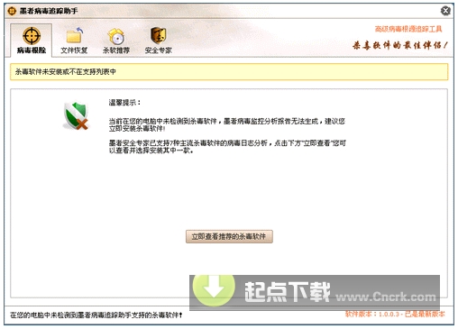 墨者病毒追踪助手是一款查杀类安全辅助软件,它可以通过分析杀毒软件的病毒查杀日志,将杀毒软件无法彻底删除的顽固病毒、木马等恶意程序的根源文件彻底铲除,使您的电脑系统更加健康,上网更加无忧