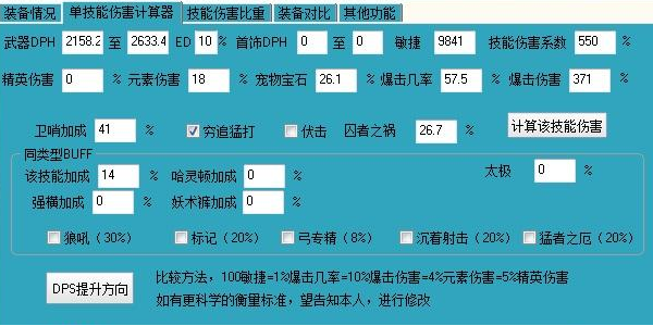 今天我们为大家推荐的就是来自论坛玩家自己制作的两款输出模拟器,它们分别是玩家半世悠然制作的箭塔相关计算器与玩家白菜包子制作的2.1版本圣教军装备模拟器。半世悠然制作的猎魔人模拟计算器有档位计算器,宝石升级率查询,箭塔计算器等功能。不仅可以模拟出当前DH造成的伤害,还会对你的可提升方向给出提示。