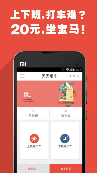 天天用车是一款专为上班族提供的手机拼车软件,用户只需在软件中输入起点和终点,即可快速寻找相同路线的车友们一起打车回家,用挤公交的钱来坐上舒适便捷的出租,何乐而不为。