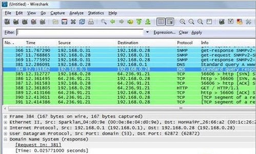 (1)确定Wireshark的位置。如果没有一个正确的位置,启动Wireshark后会花费很长的时间捕获一些与自己无关的数据。(2)选择捕获接口。一般都是选择连接到Internet网络的接口,这样才可以捕获到与网络相关的数据。否则,捕获到的其它数据对自己也没有任何帮助。