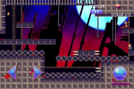 游戏分为挑战、练习、疯狂三种模式。除了通关挑战模式之外,付费也可以直接解锁疯狂模式,当然前提是玩家愿意接受这个精神上的虐待。灼热的地狱、突然坠落的铁球以及尖刺林立的陷坑无时无刻不考验着大家的操作,而游戏中通过“死亡”来获得经验的讽刺设定也与超高的关卡难度交相呼应。