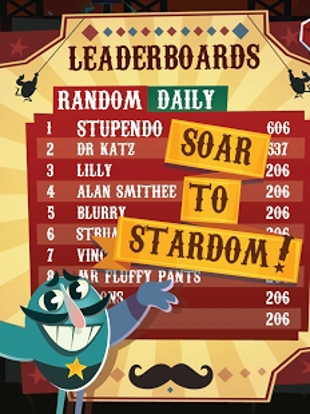《惊异悬吊 Swinging Stupendo》是开发商 Bite Size Games Ltd 以马戏团的空中飞人为题材推出的一款休闲类游戏。《惊异悬吊Swinging Stupendo》操作简单,玩家点击屏幕即可。《惊异悬吊Swinging Stupendo》游戏中玩家所操纵的角色就会放出一条绳子黏在天花板上进行左右摆荡,松手的话绳子就会断开,通过这些技巧可以去到更远的地方。
