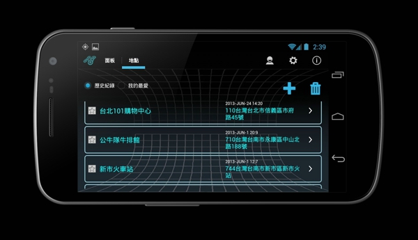 Navier HUD将您所设计变更的导航面板、目的地历史纪录与设定为最爱的目的地记录下来、并以您的Google帐号来将这些资料同步到不同装置