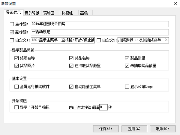 7、快捷键设置:可设置抽奖名单、中奖名单、播放颁奖音乐等快捷键。