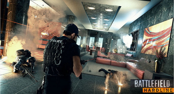 Visceral Games在E3上展示了《战地:硬仗》的多人模式。同时宣布PS4和PC的Beta测试今天正式开启。下面的视频展示了劫案模式,该模式中,一队罪犯同警察利用多种武器和载具展开了乱战。玩家在游戏中可以像《战地4》一样获得勋章。最终,罪犯撬开被他们弄翻的装甲运输车,获得了战利品,开始逃跑。而警察则在直升飞机中进行追逐。当然游戏中有可破坏的环境。一个吊臂直接砸入相邻的建筑物,同时一个劫匪用油车撞入警察的警戒线进行自杀攻击。还有人被电击枪几种。