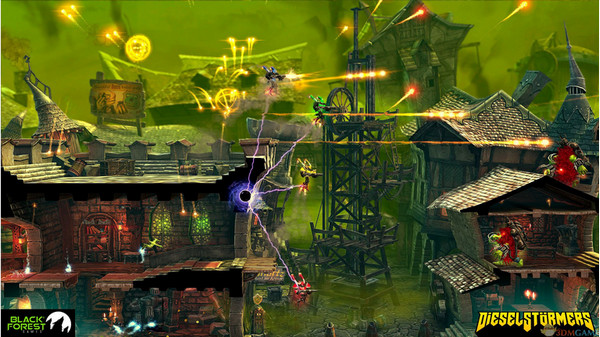 机械风暴是一款以人类与兽人的战斗为题材的射击游戏,游戏设定在一个貌似中世纪年代人类与兽人族为敌的架空背景之中,玩家将身陷一个充满了机械与燃油的世界中战斗,情况十分危险。游戏最多支持4名玩家共同合作进行游戏,游戏时玩家将可以相互利用彼此的特殊能力。全部场景关卡以及敌人数量全都都由系统即时演算,每次进入游戏你都将体验一个完全不同的全新世界。本作包含了多人合作、RPG成长、关卡随即以及武器自由组合等超多种类型元素的的融合,带给你极爽快的游戏体验。