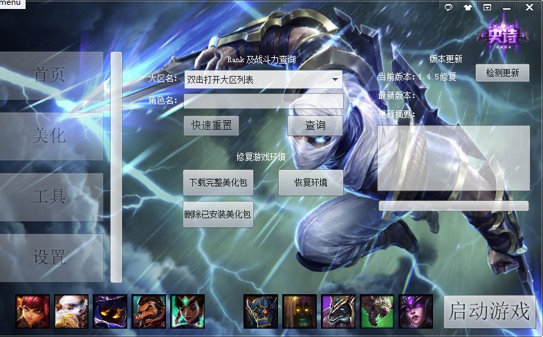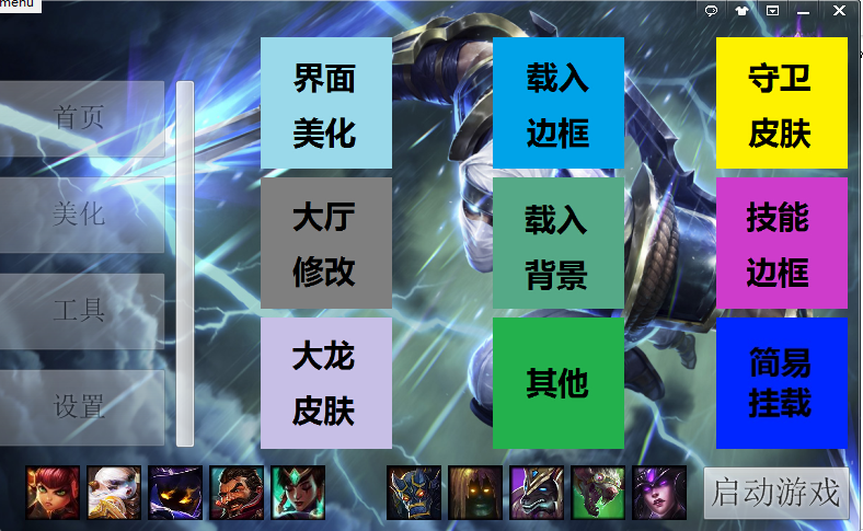 1、软件采用挂载方式美化游戏,兼容CC皮肤挂载器、多玩英雄联盟盒子、乐派宝盒、MK盒子、英雄联盟小助手等第三方软件。2、挂载美化项时,若不存在美化资源包,程序会提供下载。但是资源毕竟是上传到免费网站以供下载,所以难免会有各种问题,推荐下载完整美化包以解决。