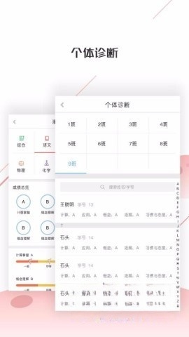 6、渴望实现班级的无缝切换?借助个体诊断年级选择栏,就能轻松完成班级切换,还能精准查看个体的诊断状况,这无疑是高效的体现!