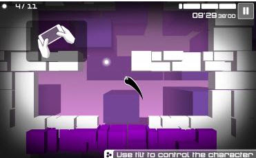 玩家可以通过点触式或者重力感应操控主角来回穿梭,上蹿下跳。避开活动的蓝色方块,有可能把你压得粉碎;也不要碰上蓝色墙壁,不然就有触电被焚的体验咯;碰上强气流可以迅速点击上下键进行冲刺;期间还要收集白色光点,寻找黑色开关……随着游戏的深入,还将见识到更多的玩法哦!