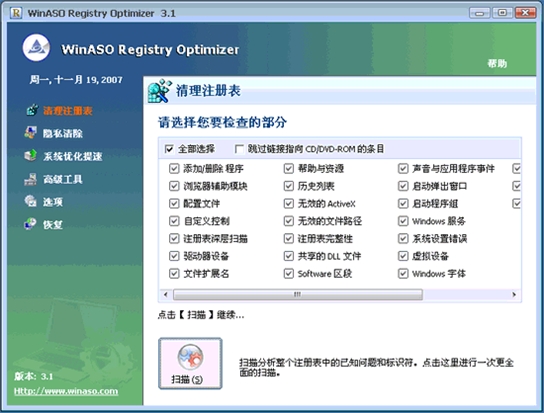 WinASO Registry Optimizer能扫描windows注册表,找出错误和陈旧无用的键值,通过修复注册表,可使系统运行变快而没有错误。