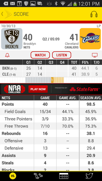 - 查看每场NBA比赛的实时数据、分数和安排表