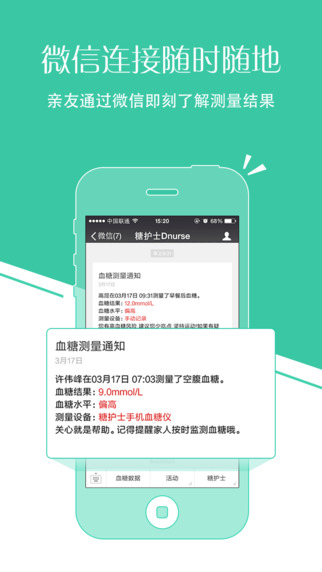 好友社交无障碍:想知道病友的控糖情况?没问题!糖护士的好友之间不仅可以发送文字,还可以发送图片、语音,交流更畅快;评比控糖达人:谁的血糖控制的好?谁测血糖最勤快?谁有裸奔的秘诀?糖护士定期会推荐控糖达人,可以添加控糖为好友交流控糖经验;预测血糖猜一猜:血糖控制怎么样心里有数没?糖护士设计猜一猜模块,先猜一猜自己的血糖,再和测量出来的值对比,如预测值与测量值相符将有积分奖励。全新的视觉体验:顶级设计师团队倾力打造,扁平化的设计风格,简洁漂亮的界面。