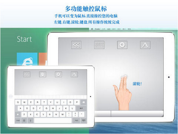 便捷切换控制 模式: 一个按钮来达到切换输入模式的功能,您可以快速从触屏输入切换到触摸鼠标输入,以及键盘输入,避免复杂设置,提高您的工作效率;