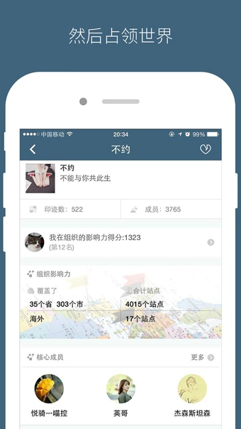 组织:如果你在荒无人烟的地方,周围没有小伙伴,不妨加入一个组织吧,这样大家都能帮你去推送印迹哦,组织可是很团结的呢。