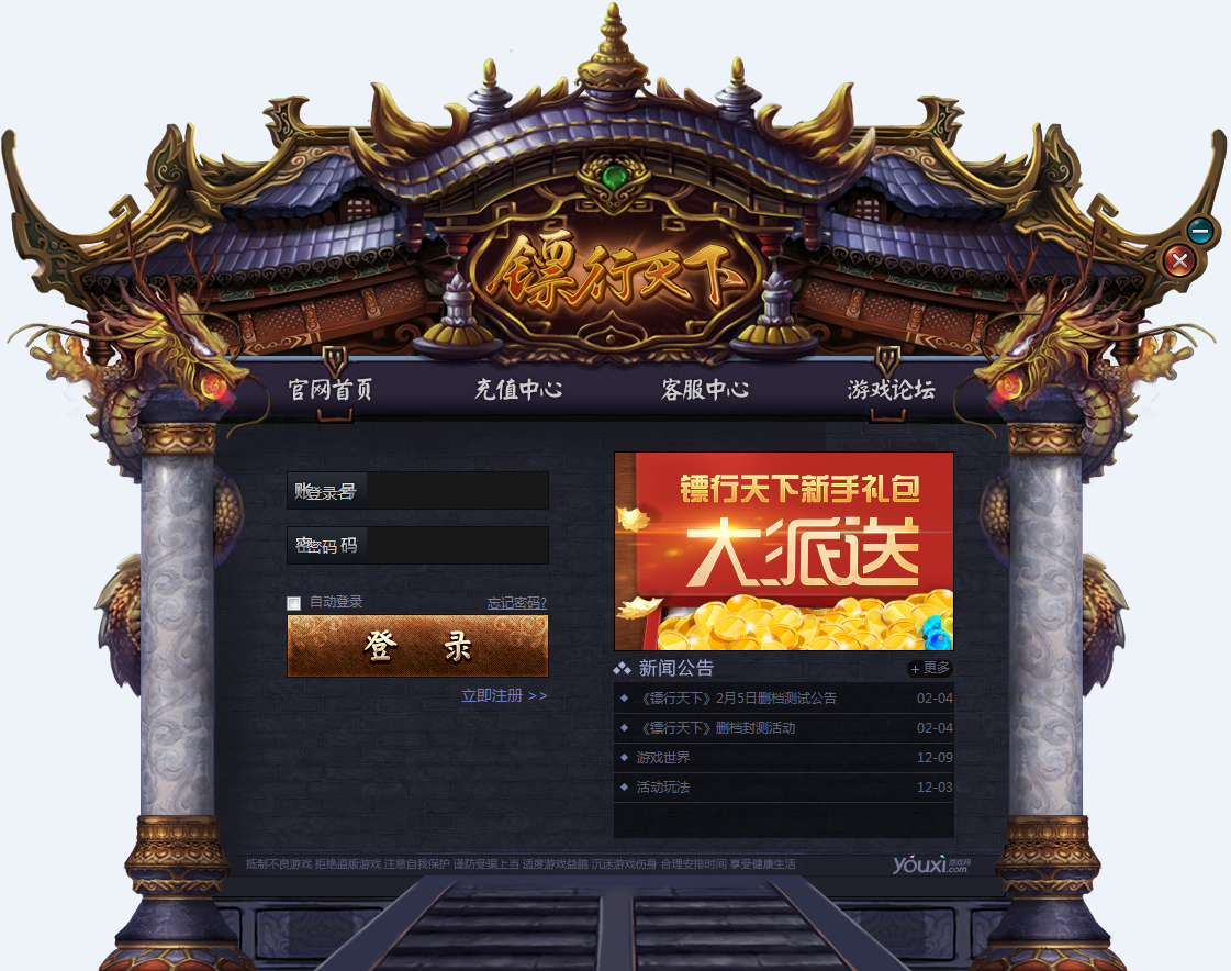 游戏礼包领取地址:http://bbs.youxi.com/plugin.php?id=faka_youxi:fh&fid=153镖行天下新手礼包-发号说明