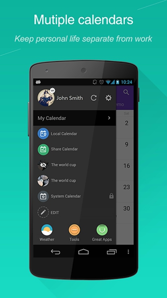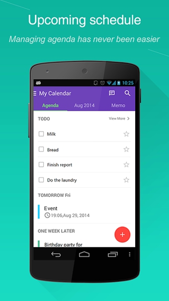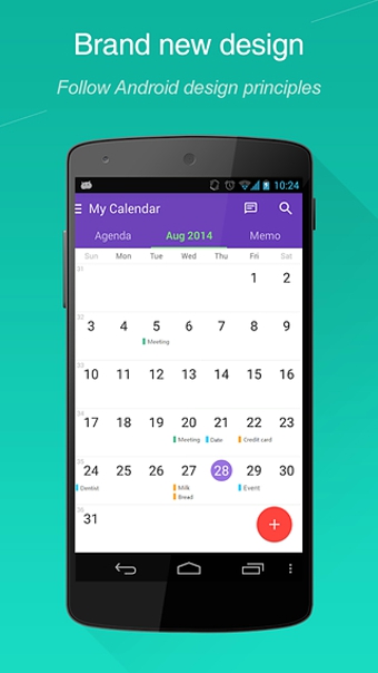 简洁,美观,实用,WeCal是你强大的日历助手,可以同步谷歌日历,旨在帮助您日常存储数据,查看日历,提醒,备忘事件,列表待办事项和节日。更重要是,你可以一键从Facebook或联系人导入朋友的生日!