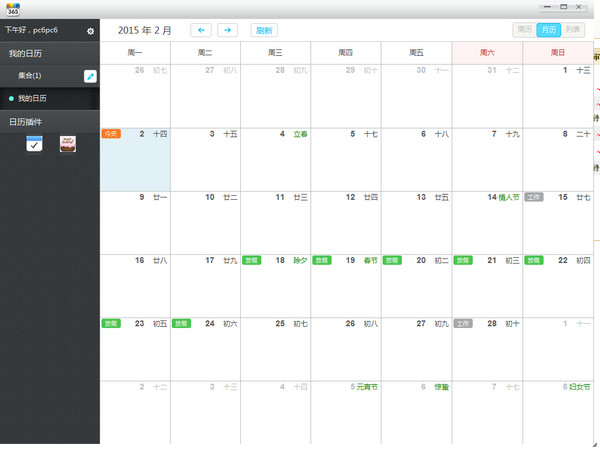 一、 在PC端下载并安装365日历软件。安装完成后双击快捷方式运行该程序。界面如图7.17所示。