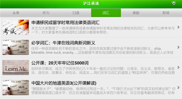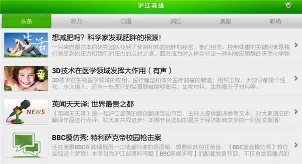 沪江英语听说读依托于资源庞大、人气旺盛的沪江英语网站,为你24小时不间断提供最新英语资讯和学习资料。安装沪江英语,让英语真正伴你左右吧!