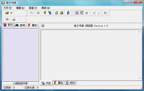 这个免费的阅读器主要针对没有或不打算注册却需要查看电子书库所生成的书库的用户。在3.65以后的版本将带有这个阅读器。这个阅读器可以将书库和自己绑定,生成一个EXE 文件,以后在其他机器上就可以直接查看书库无须任何软件的支持