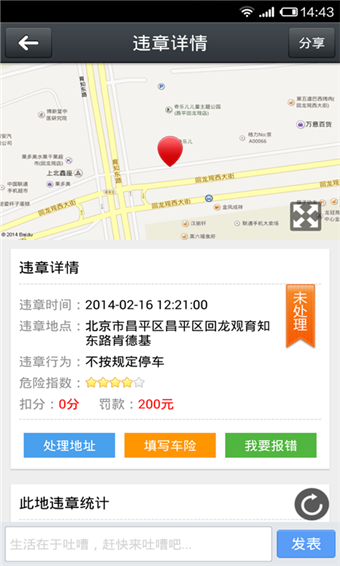 ★附近违章高发地:结合百度地图定位附近易发路段,提醒车主避开坑爹路段