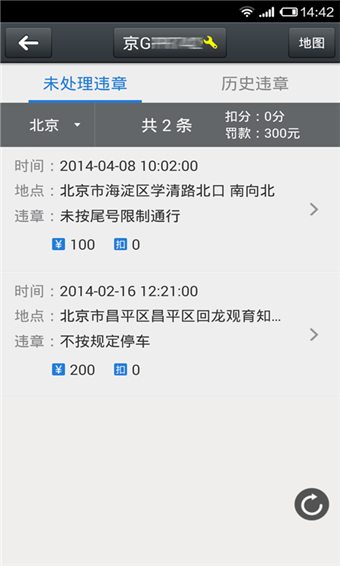 ★违章查询:交管局违章记录实时查询,支持全国30省300城市★违章详情:违章路段、时间、类别,罚款、扣分、处理地址等信息